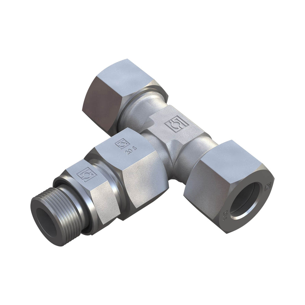 Adj Branch Tee 24°Taper/O-Ring Size / Type: 06L with Cutting Ring, Union Nut Straight Male Stud Fitting 1/8 BSP, Profile Sealing Steel, Zinc/Nickel-Plated